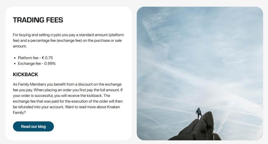 Knakenの手数料体系は、暗号通貨の取引に対する固定手数料と、入金と出金に対する固定手数料とパーセンテージベースの為替手数料を組み合わせています。Family Membersには割引が適用されます。暗号通貨の出金手数料は動的で、出金額から差し引かれます。一方、ユーロの出金には標準オプションと緊急オプションがあり、それぞれに関連する手数料があります。