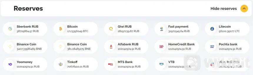 Qiwi (Contas Bancárias) | 1,6%, mínimo de 100 rublos | Transações envolvendo contas bancárias |