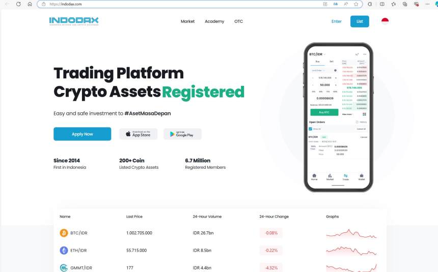 INDODAX oferece um aplicativo móvel que permite aos usuários negociar criptomoedas em qualquer lugar. O aplicativo possui dados de mercado em tempo real, ferramentas avançadas de negociação e opções de login seguras, tornando-o conveniente e seguro para os usuários gerenciarem seus investimentos a qualquer hora e em qualquer lugar. O aplicativo INDODAX está disponível para download tanto na App Store quanto no Google Play Store. Você pode encontrar os links de download na página principal da exchange em seu site.