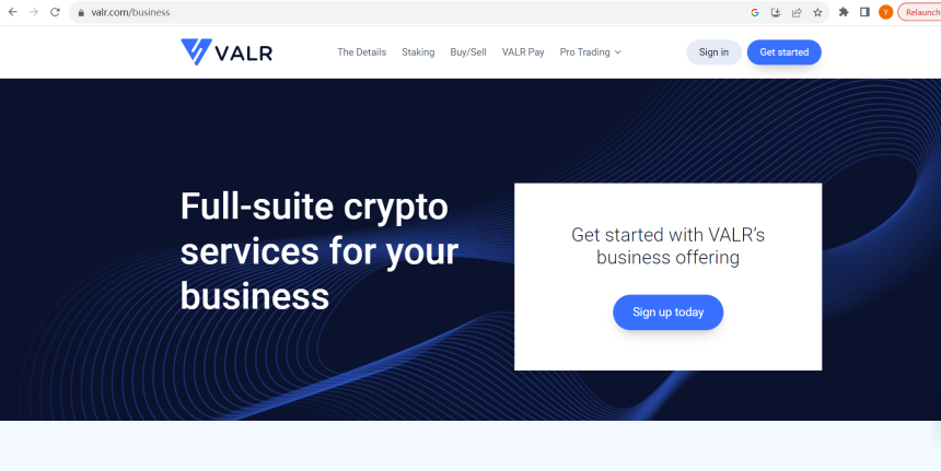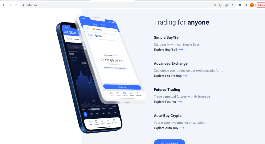 1. Visite o site VALR e clique no botão"Começar".