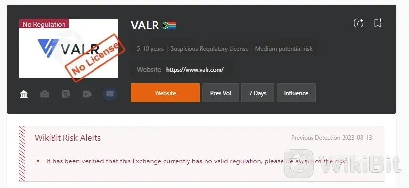 Em 2021, a Autoridade de Conduta do Setor Financeiro (FSCA) da África do Sul multou VALR em 3 milhões de ZAR (cerca de US$200.000) por não cumprir as regulamentações de combate à lavagem de dinheiro. A FSCA constatou que VALR não havia implementado medidas adequadas para prevenir a lavagem de dinheiro e o financiamento do terrorismo, e que não havia relatado transações suspeitas às autoridades.