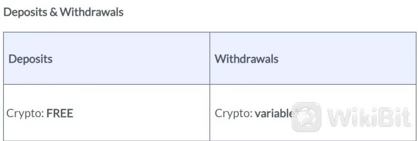 Depósitos em criptomoedas são gratuitos.