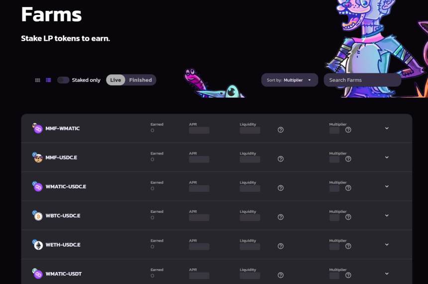 Além das trocas, a MM Finance permite que os usuários se tornem provedores de liquidez e ganhem recompensas, ou apostem tokens em fazendas e pools para obter renda passiva.