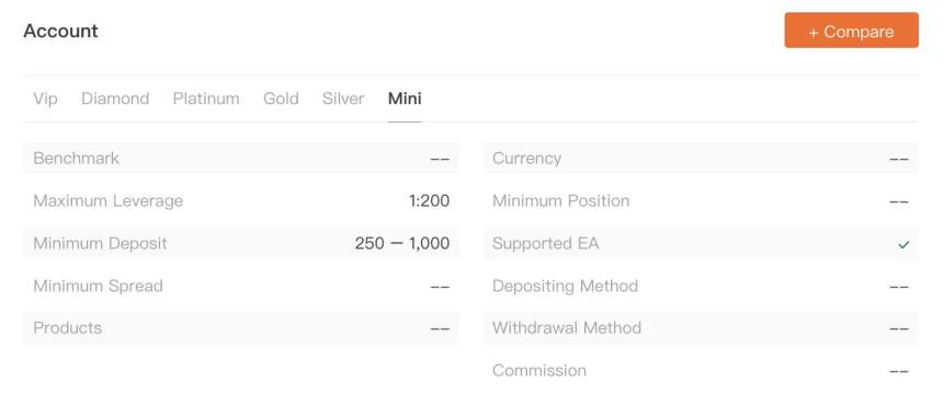 Они предлагают несколько типов счетов с различными требованиями к минимальному депозиту: