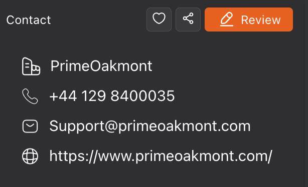 PrimeOakmont предлагает поддержку клиентов по телефону +44 129 8400035 и +1 437 8370312, а также дополнительную помощь через их веб-сайт, https://www.primeoakmont.com/.