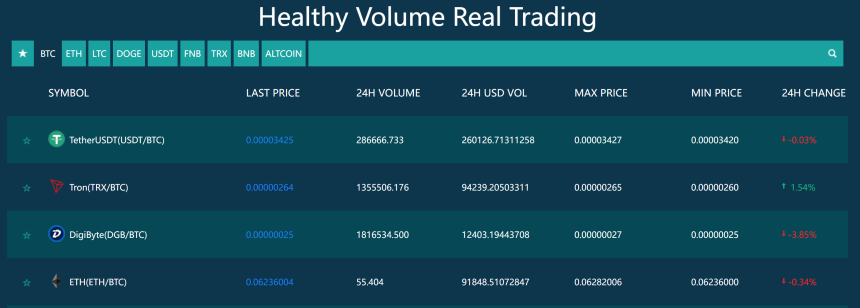 คู่ที่ใหญ่ที่สุดในไซต์คือ ETH/BTC