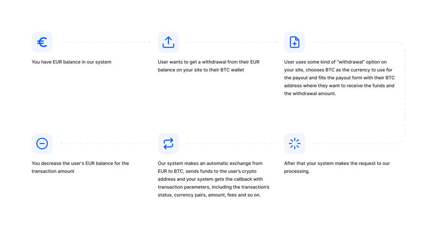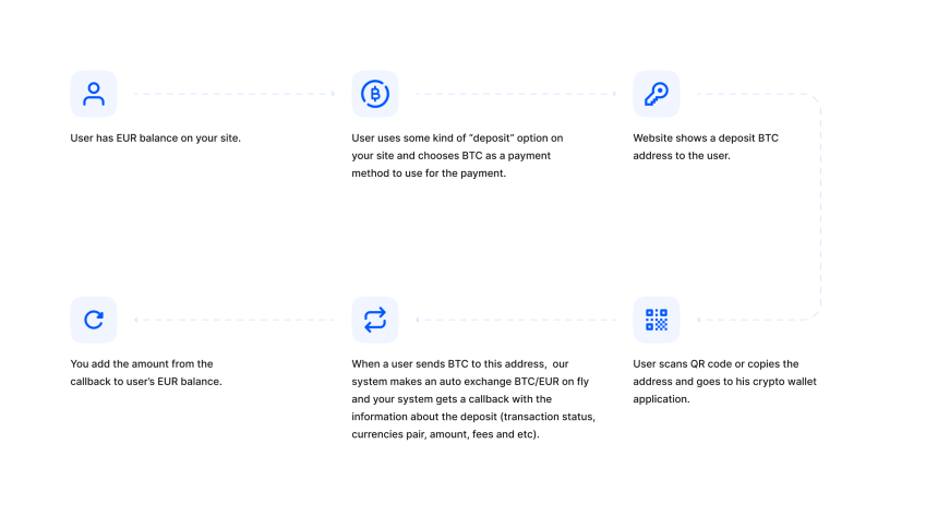 CoinsPaidให้บริการบนเว็บด้วยโซลูชั่นการแลกเปลี่ยนแบบทันที ซึ่งหมายความว่าเงินที่เก็บไว้ในยอดคงเหลือของร้านค้าสามารถแปลงเป็นสกุลเงินดิจิทัลได้โดยอัตโนมัติก่อนที่จะถูกส่งไปยังกระเป๋าเงินดิจิทัลของผู้ใช้