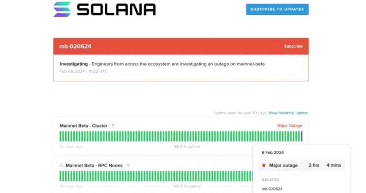 Solana (SOL) ประสบปัญหาเครือข่ายขัดข้องครั้งใหญ่เมื่อวันที่ 6 กุมภาพันธ์ นี่เป็นเหตุการณ์แรกกับ Solana นับตั้งแต่เดือนกุมภาพันธ์ 2023 หลังจากเกิดปัญหาต่างๆ มากมายในอดีต