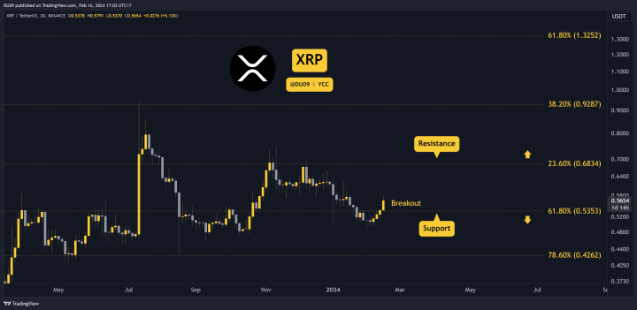 XRP เพิ่มขึ้น 9% ในสัปดาห์นี้หลังจากทะลุแนวต้านที่ 54 เซนต์ ซึ่งต่อมาได้กลายเป็นแนวรับ การฝ่าวงล้อมครั้งนี้ทำให้ตลาดกระทิงเป็นฝ่ายรุก และพวกมันมีระดับที่ 60 และ 68 เซนต์เป็นเป้าหมาย