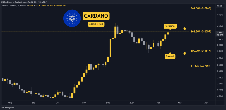 ADA มีผลการดำเนินงานที่โดดเด่นในสัปดาห์นี้ หลังจากที่ราคาเพิ่มขึ้น 11% ในการทำเช่นนั้น สกุลเงินดิจิทัลนี้มาถึงแนวต้านสำคัญที่ 60 เซ็นต์ ซึ่งจนถึงขณะนี้ได้หยุดยั้งการขึ้นราคานี้