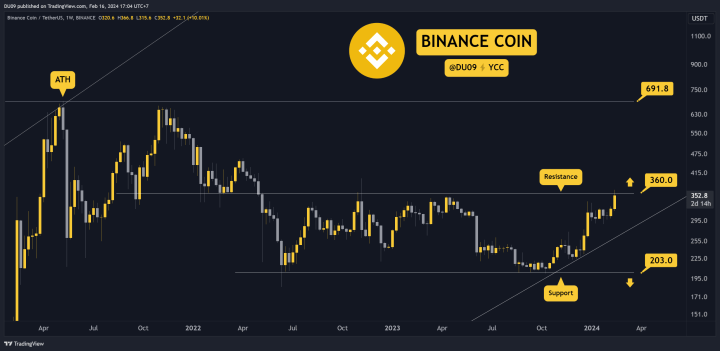 ในที่สุด Binance Coin ก็มาถึงแนวต้านที่ 360 ดอลลาร์แล้ว สิ่งนี้เกิดขึ้นหลังจากการชุมนุมที่น่าประทับใจซึ่งทำให้ BNB เพิ่มขึ้น 10% ในสัปดาห์นี้