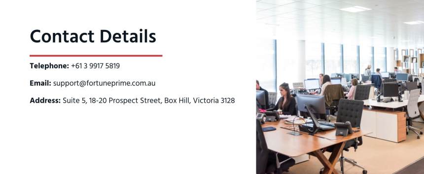 นักซื้อขายสามารถติดต่อขอความช่วยเหลือทางโทรศัพท์ที่ +61 3 9917 5819 หรือส่งอีเมลที่ support@fortuneprime.com.au
