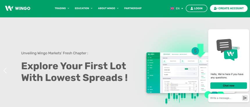 WINGO, ที่ตั้งในหมู่เกาะมาร์แชลล์และก่อตั้งในช่วง 1-2 ปีที่ผ่านมา มีแพลตฟอร์มการซื้อขายที่มั่นคงพร้อมการเข้าถึงสกุลเงินดิจิตอลประมาณ 400 สกุลเงินดิจิตอล และ มากกว่า 1000 เครื่องมือการเงิน รวมถึง Forex, โลหะ, สินค้า, ดัชนี, หุ้น และสกุลเงินดิจิตอล