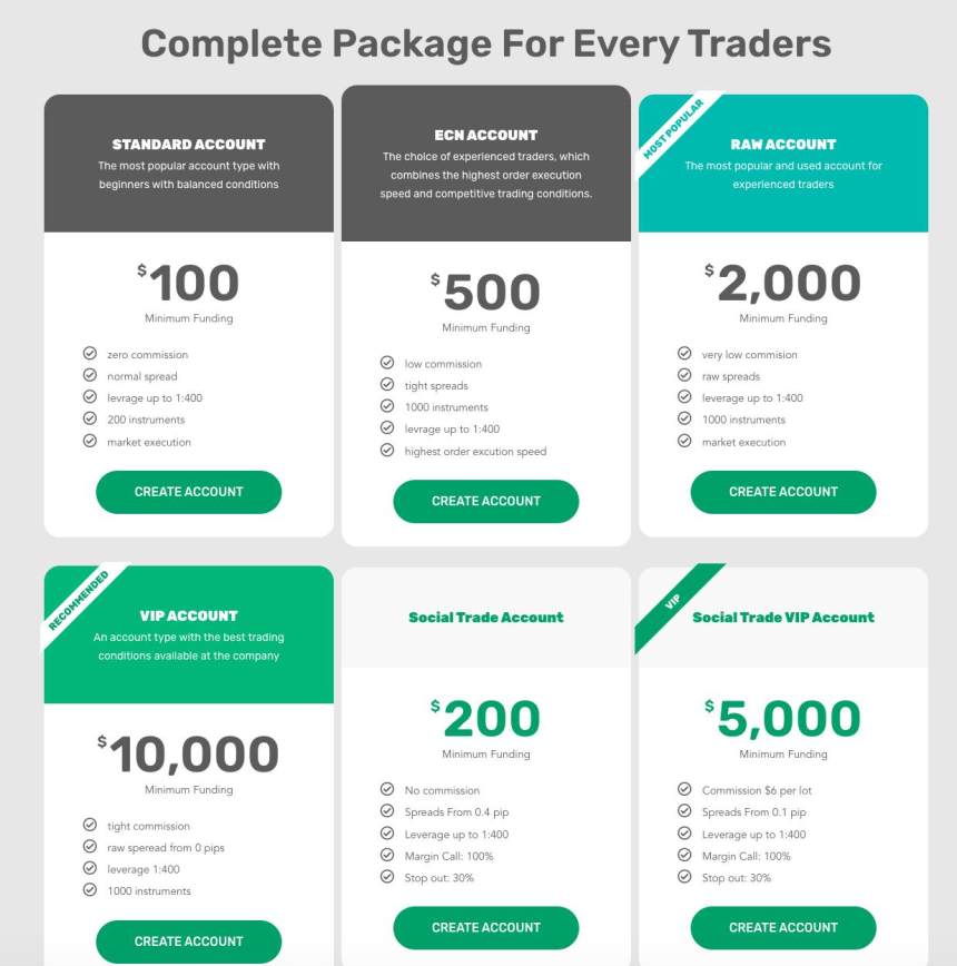 นอกจากนี้ยังมีบัญชี Social Trade ที่ต้องการยอดฝากขั้นต่ำ $200 และไม่มีค่าคอมมิชชั่น ในขณะที่บัญชี Social Trade VIP ต้องการยอดฝาก $5,000 พร้อมค่าคอมมิชชั่น $6 ต่อล็อต