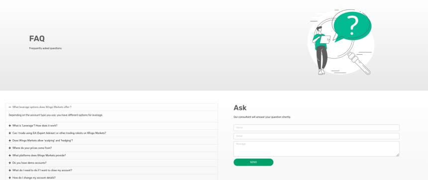 WINGO มีบริการหลากหลายเพื่อสนับสนุนนักซื้อขายและเพิ่มประสบการณ์การซื้อขายของพวกเขา แพลตฟอร์มมีส่วน FAQ ที่ตอบคำถามที่พบบ่อยและให้ความชัดเจนเกี่ยวกับการจัดการบัญชี เงื่อนไขการซื้อขาย และการสนับสนุนทางเทคนิค