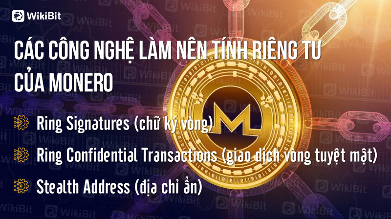 Monero sử dụng chữ ký vòng, địa chỉ ẩn danh đảm bảo tính riêng tư cho người tham gia mạng lưới và sử dụng chức năng RingCT để đảm bảo số tiền giao dịch được hoàn toàn bảo mật