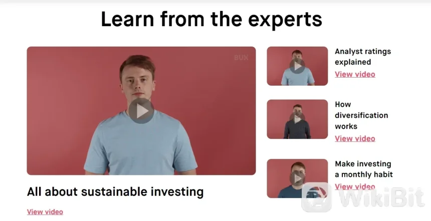 BUX cung cấp một loạt tài liệu giáo dục và công cụ để giúp người dùng nâng cao hiểu biết về giao dịch tiền điện tử. Những tài liệu này cung cấp cho người dùng kiến thức và kỹ năng cần thiết để đưa ra quyết định giao dịch thông minh thông qua các buổi hội thảo trực tuyến và video được đăng trực tiếp trên trang web.