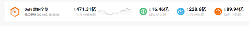 WikiBit 2021-03-18 16:58至截稿时止:全市场DeFi总锁仓额为471.31亿美元