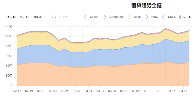 截止发稿:DeFi借贷平台借款总量:168.46亿美元