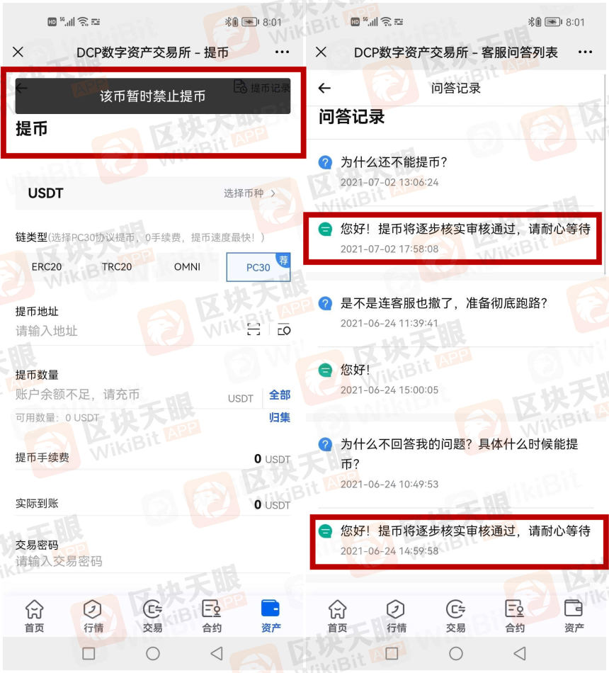 DCP交易所:客服一直在拖延提币时间!使用这家交易所的用户称,自己在该交易所遇到无法提币的情况,时间已经长达半年了,客服一直在敷衍拖延时间。另外,交易所现在也打不开了。