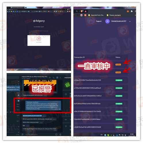 Folgory交易所:已超过30天无法提币!一俄罗斯用户爆料,他多次提币但都没有审核成功,目前已经超过30天仍没有提现成功!目前已经报警,等待处理。