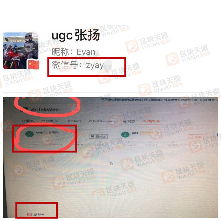 gitee上开源zyayhj就是张扬,爆料者还提供了张扬的微信号,与这个名字一模一样;新项目叫 zklink,代币简称 ZKL 。