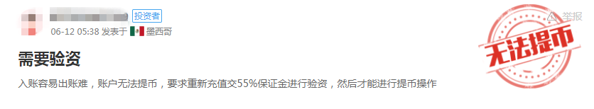 有用户的账户无法提币,该交易所要求重新充值交55%保证金进行验资,然后才能进行提币操作。
