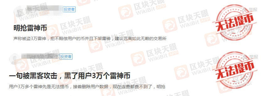 对于一些小交易所,就要注意了,只要有黑客攻击的公告出来,不是跑路就是出套路。3月份的时候,DeerDex·鹿网交易所上线过“空气币”雷神币,有用户丢失30000雷神币,该平台声称是遭到了黑客攻击,拒不赔偿用户的币且直接下架雷神币。
