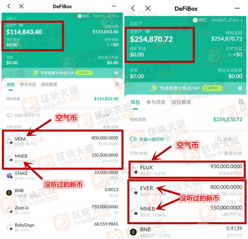 遇见上图MNEB、EVER、VERA、FLUX的代币,要当心了!