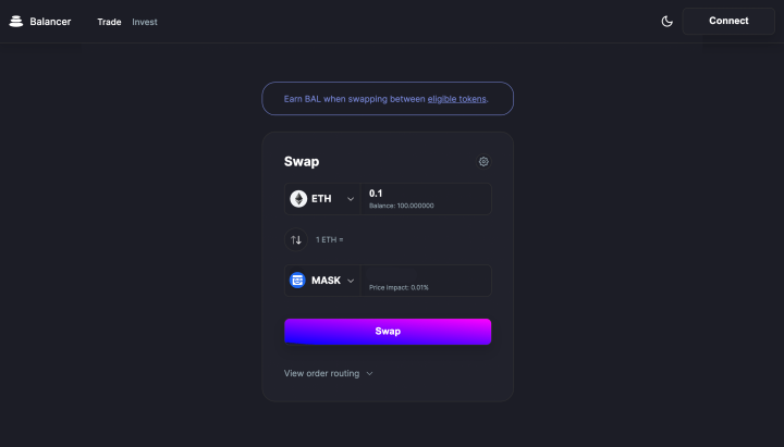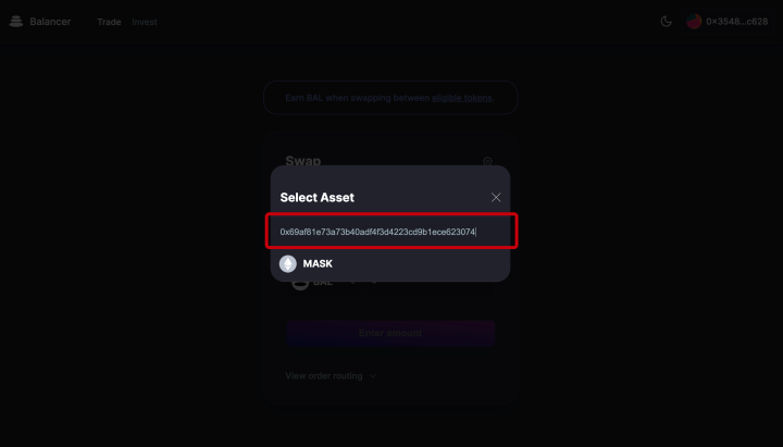 如果您选择其他资产,Balancer将自动将其转换为USDC,然后交易为MASK。额外的步骤可能会导致交易费用的增加。