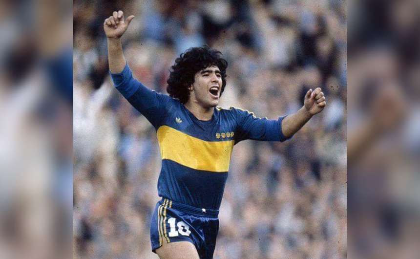 身穿博卡青年队球衣的足球传奇人物迭戈-马拉多纳(Diego Maradona)。图片来源:PA Images