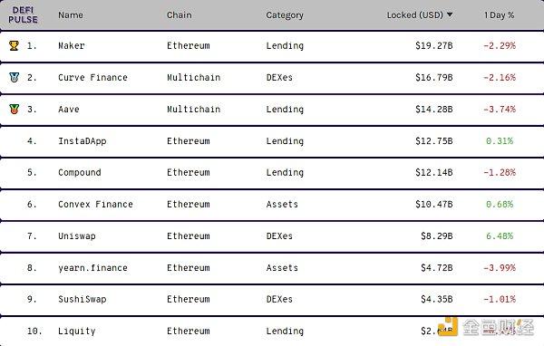 4.DeFi中锁定资产总价值达1214.6亿美元
