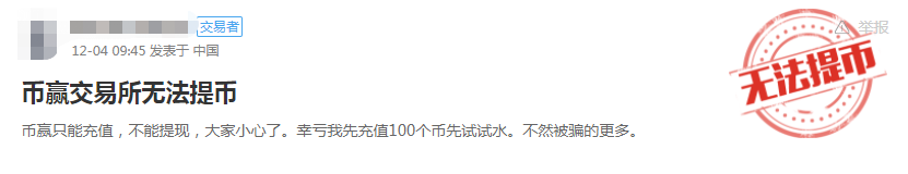 真是好险,幸好损失不多。如果查看下有关币赢交易所的曝光,大多数都在说它只能充值无法提现。