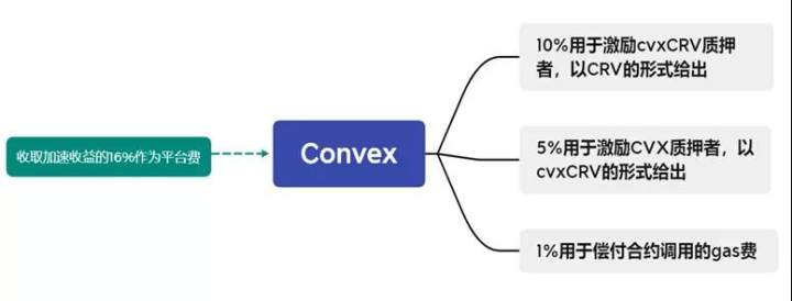 我们尝试深入一些的思考,Convex模式之所以可以良好的运行,本质上无法脱离CVX的价格支撑,因为一旦CVX价格过低,第三种选择的收益率将会下降,同时SushiSwap的流动性挖矿收益率下降或将引发cvxCRV的流动性不足。所以Convex协议仍需一些措施来减少CVX与cvxCRV的流通盘—Convex收取加速收益的16%作为平台费,并以此为基础,激励CVX与cvxCRV的持有者质押他们手中的token。