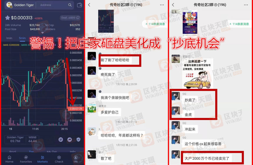 盘古社区的操盘手和布道者,为了骗钱简直就是不择手段,把他们自己的砸盘美化成“抄底机会”!所以,区块天眼有必要再次提醒大家,不管什么地方看到“盘古社区”,一定要远离!而被忽悠进来的人,保留好群里的截图、转账流水、喊单人的信息等,报警!如果报警晚了,它就把资产转移跑路了,再抓就难了。