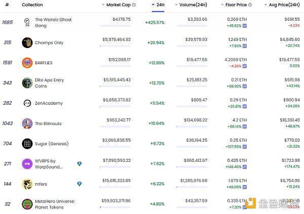 24小时内销售涨幅前十的NFT 数据来源:NFTGONFT热点
