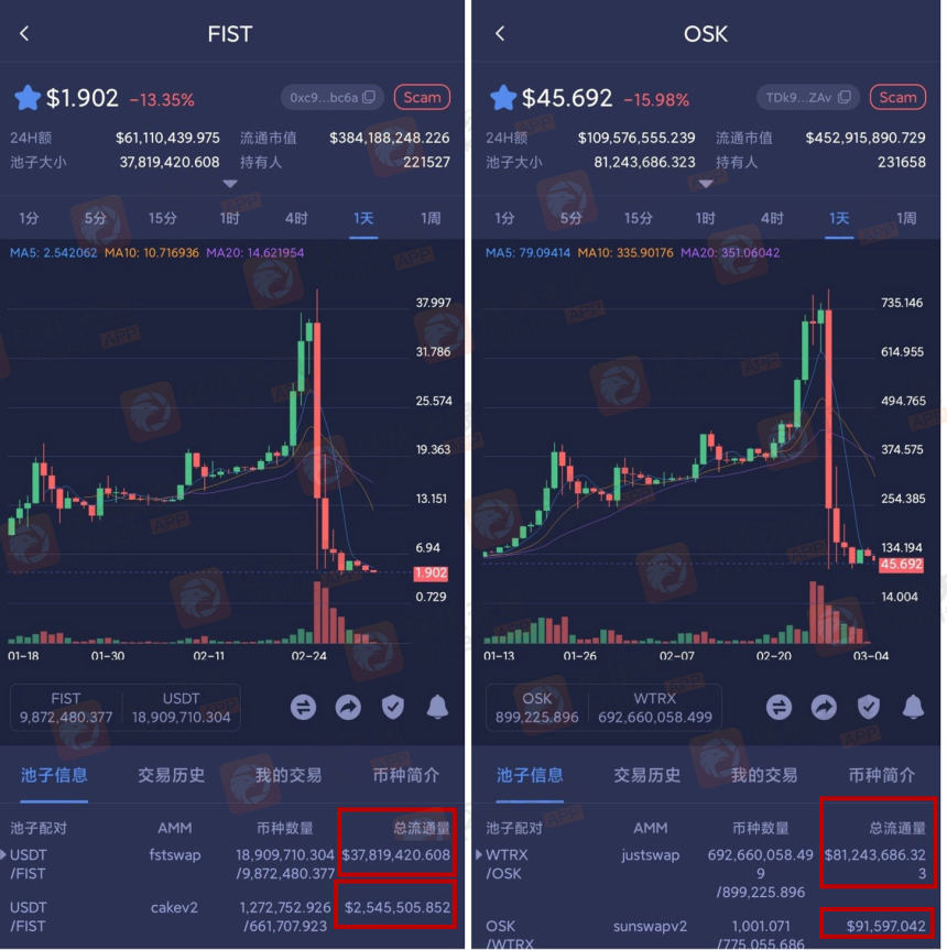 2月26日凌晨两点多,盘古社区的其它传销币FIST、OSK等用了同样的方法,至少卷跑5个亿,让更多的人血本无归!