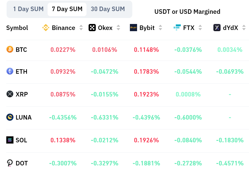3月14日的七天累计永续期货资金费率 来源:Coinglass