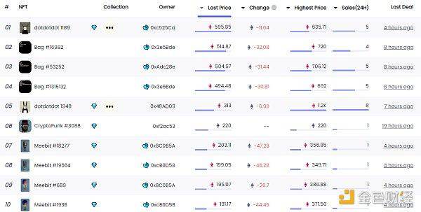 24小时内销售涨幅前十的NFT 数据来源:NFTGONFT热点