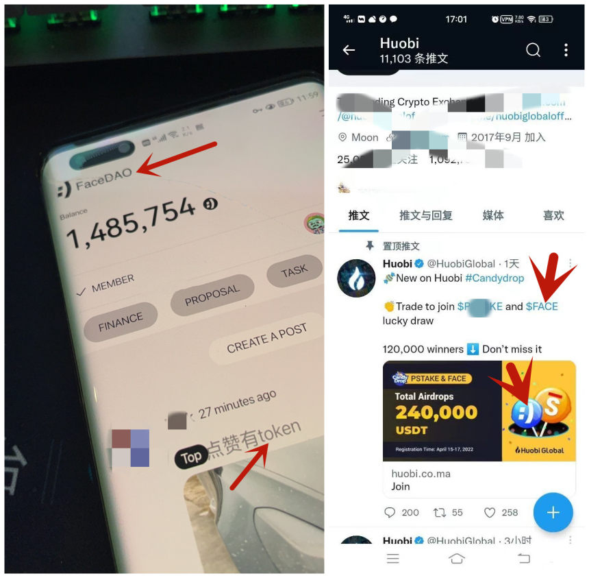 最近主打WEB3概念的soicalFI项目faceDAO,号称刷脸领空投,而且对外声称平台代币 FACE 90%将分发给用户,一时间吸引了众多韭菜注册。用户数量多了,活跃度上来了,也很快得到主流交易所的关注了,Huobi表示要上线其代币 FACE 。