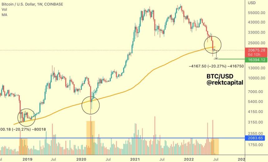 Twitter 用户 Altcoin Sherpa 也指出了更大回调的可能性,他发布了以下图表,指出20,000 美元水平的重要性。