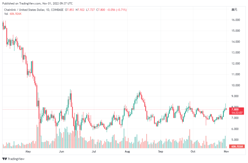 自 9 月以来,Chainlink 一直是投资者和加密货币交易者的目标。8 美元是 Chainlink (LINK) 的强大阻力位。价格突破 8 美元可能会使 LINK 向上移动。一段时间以来,Chainlink 一直在 6 美元至 8 美元的范围内强劲整合。