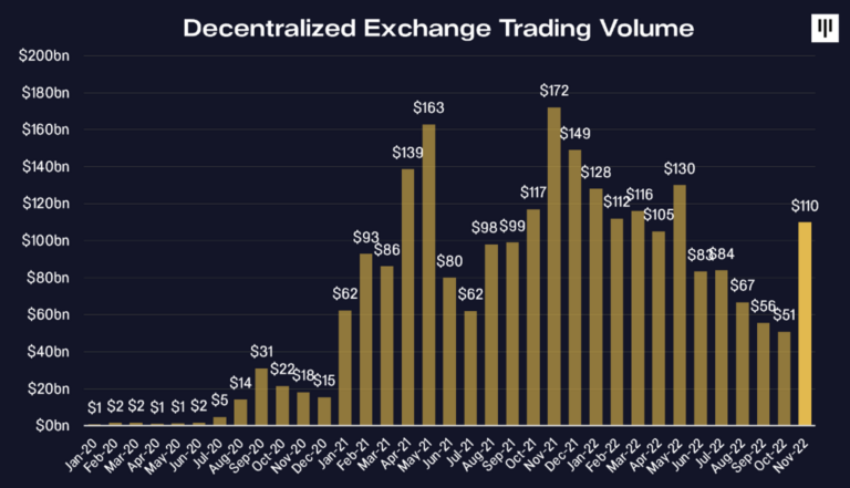 FTX 崩盘后,去中心化交易所 (DEX) 的交易量在 11 月飙升。
