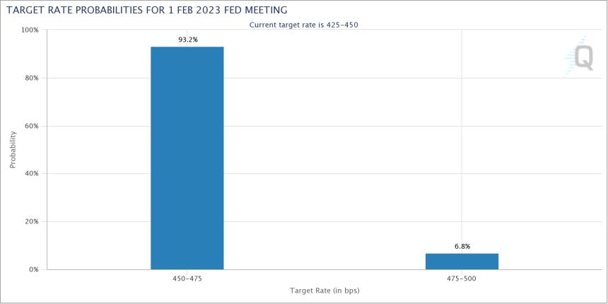 根据CME Group的FedWatch Tool,目前预计利率将低于2022年初以来的任何水平,市场情绪倾向于加息0.25%。
