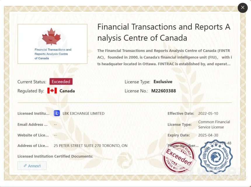 | • 多种可交易的加密货币 | • 超过FINTRAC监管许可证和过期的FINTRAC/FinCEN许可证 |