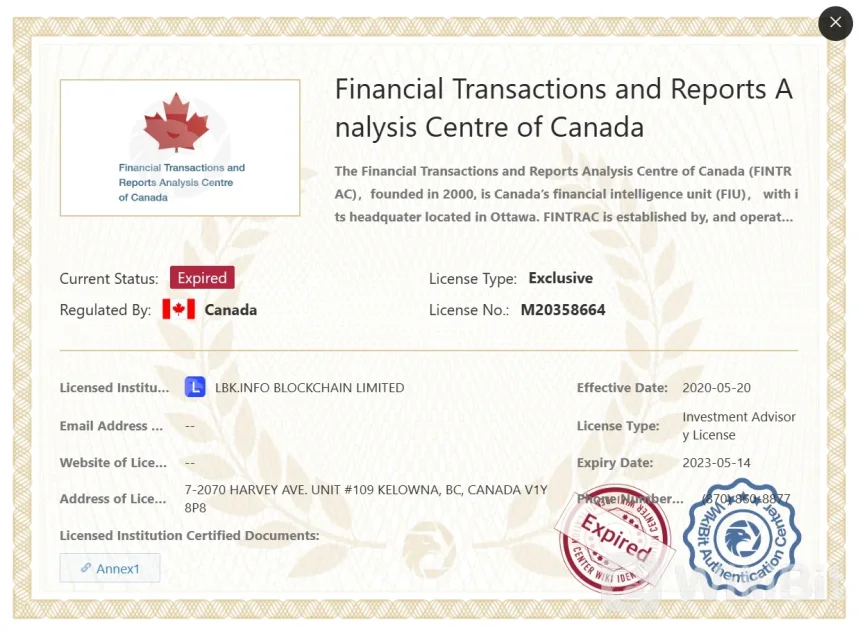 | 监管 | FINTRAC(已超过),FinCEN(已过期) |