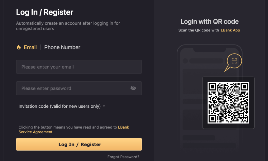 如果您没有LBank帐户,您可以点击注册按钮创建一个新帐户。