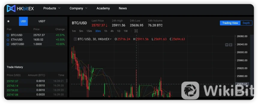 HKbitEX提供比特币、以太坊和莱特币等主要加密货币与 USDT 稳定币的交易。总共列出了大约 40 个加密货币交易对。