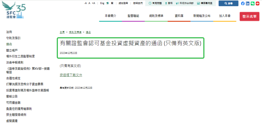 早在2023年12月22日,香港证监会官网便已公布《有关证监会认可的涉及虚拟资产的基金的通告》,正式宣布准备接受现货虚拟资产ETF申请,并且明确指出对于被准许在持牌交易平台交易的虚拟资产(如比特币,以太坊),持牌机构可发行与管理对应的现货ETF,并在持牌交易平台或受认可的财务机构以实物和现金两种方式进行认购和赎回。