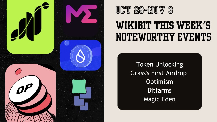 WikiBit 2024-10-28 14:47多款加密货币即将解锁,Magic Eden 测试币申领开启,Optimism奖励投票启动,币安区块链周将在迪拜举行。